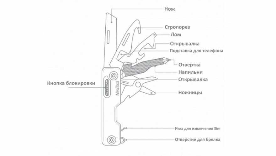 - - Требуется привыкнуть к тому, как фиксируютсч в открытом состоянии составные части мультитула.