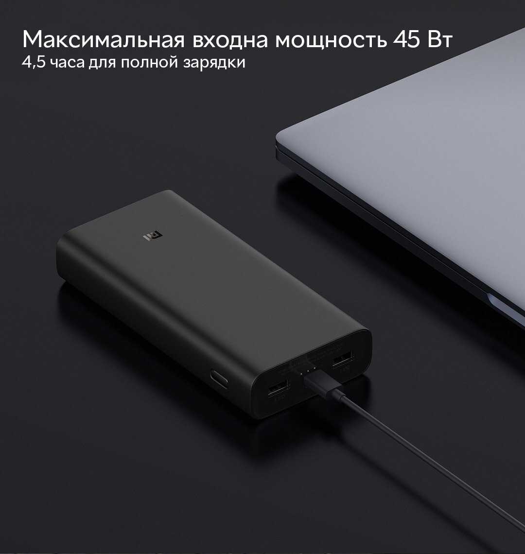 Поддерживает супер турбо экспресс зарядку (две молнии на xiaomi). В комплекте кабель UsbC двухсторонний. Им можно и заряжать как сам PowerBank так и с него сливать этим кабелем энергию.