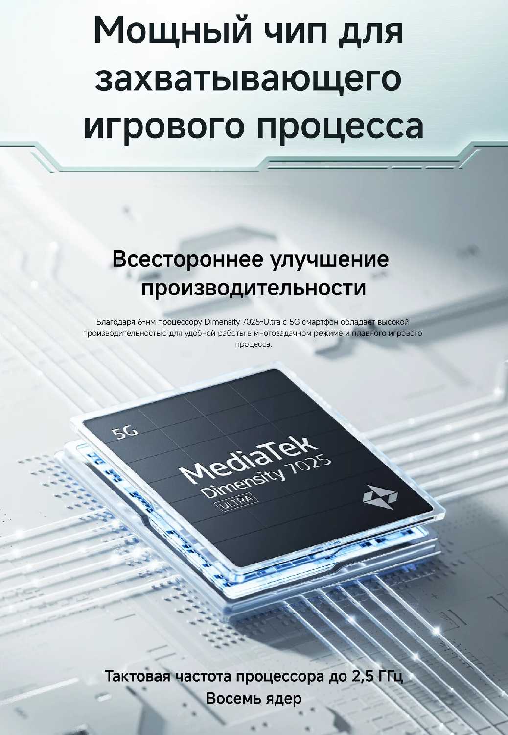 - Процессор обеспечивает плавную работу интерфейса HyperOS без лагов в повседневных задачах, таких как просмотр видео и мессенджеры, повышая удобство навигации.