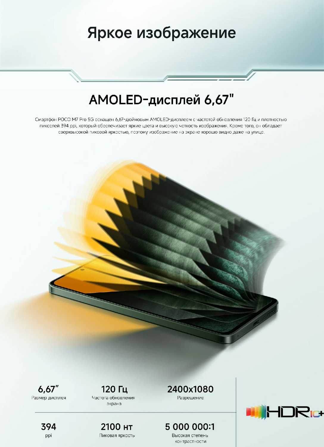 - Яркий AMOLED-дисплей с частотой обновления 120 Гц: