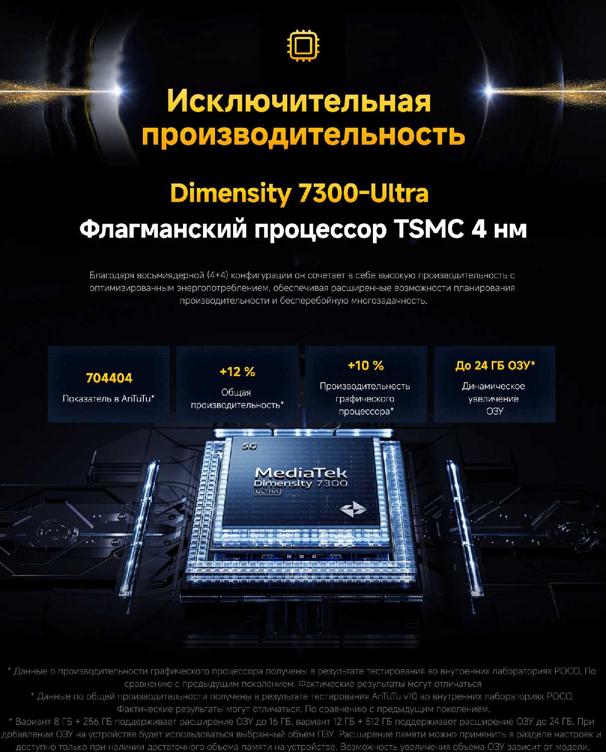 В целом аппарат заметно опережает предыдущую версию по быстродействию и отклику. 👍 - - Автономность не идеальная: из коробки аккумулятора хватает на активный день; расход заметно выше, чем у POCO X6.