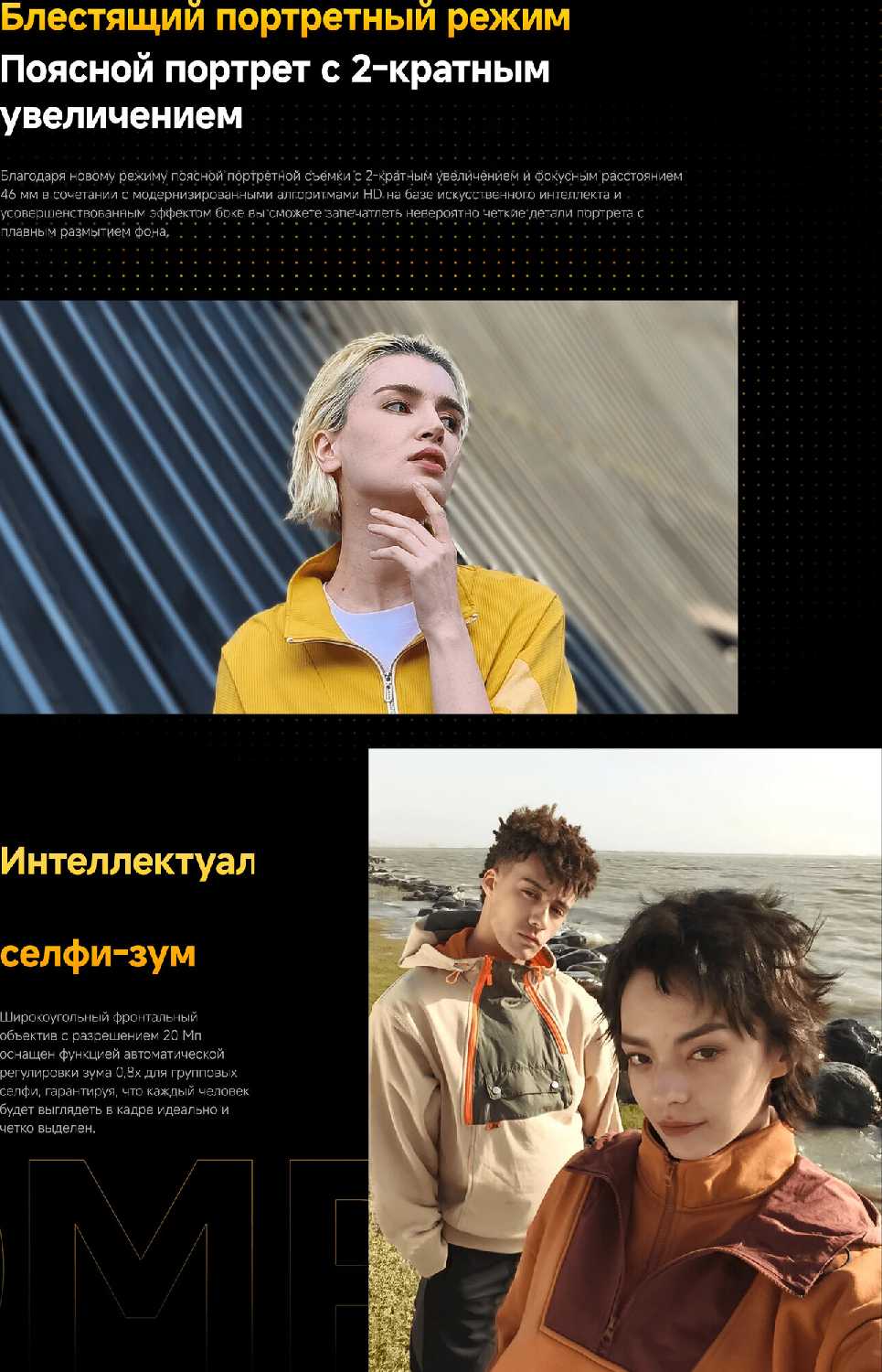 - Портретный режим качественно отделяет объект от фона, а широкоугольная камера расширяет возможности для съёмки пейзажей и групповых фото.