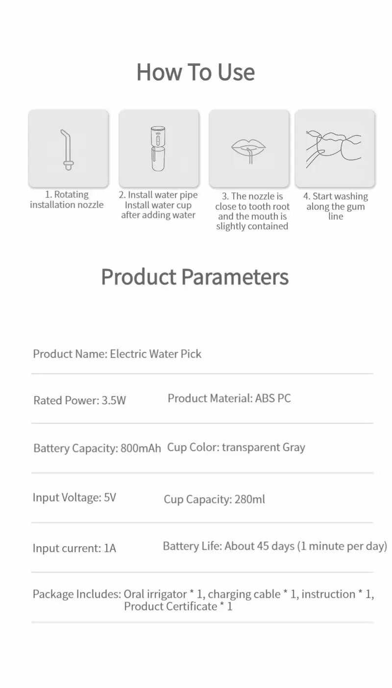 Характеристи Xiaomi Портативный ирригатор полости рта