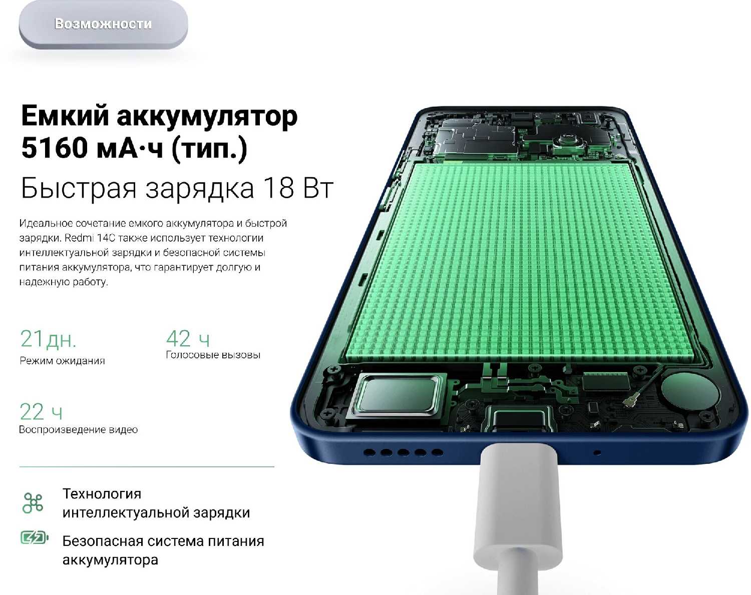 - Очень быстрая зарядка: с нуля до 100% примерно за 20 минут.