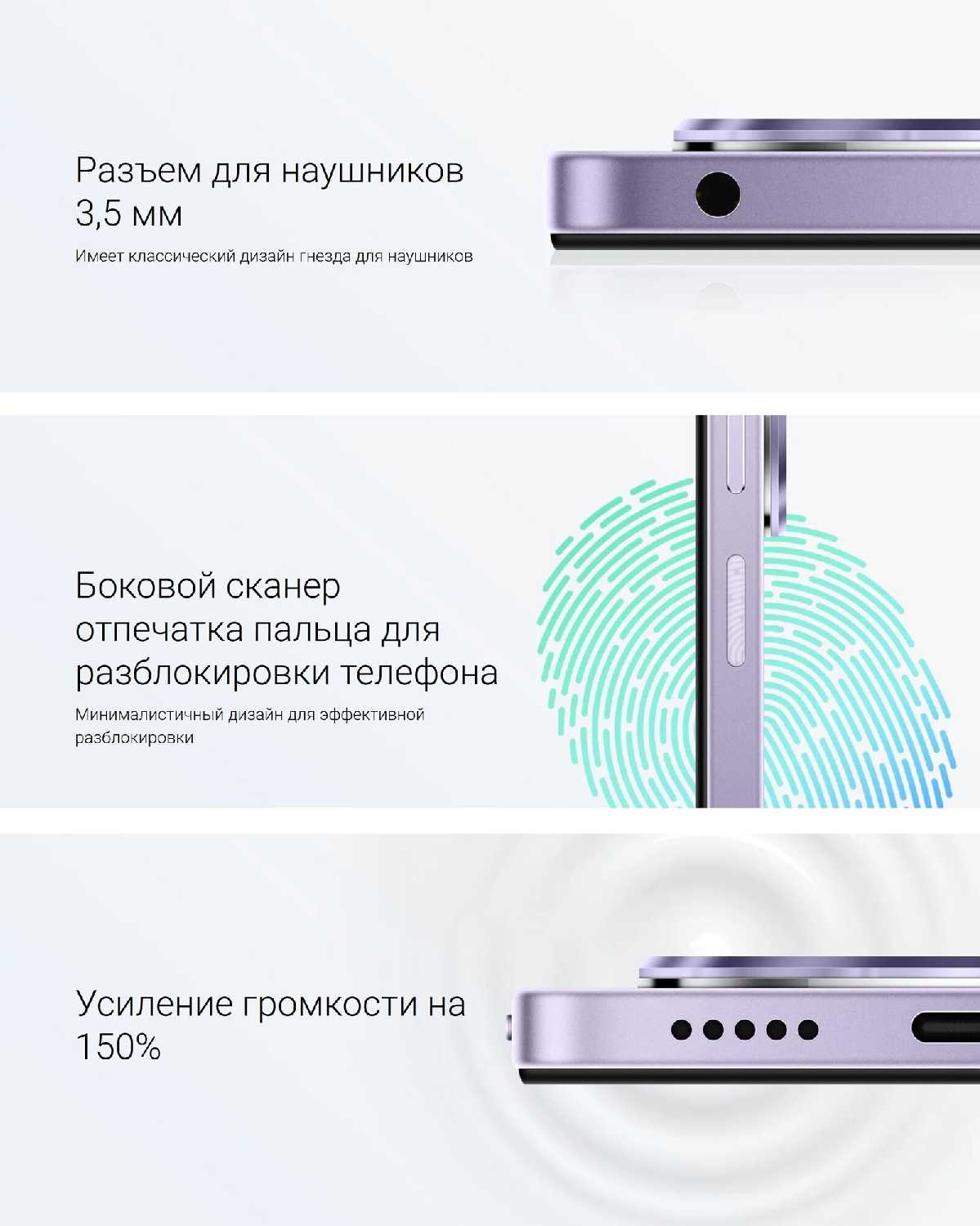 - + Нестандартный цвет корпуса, форма и расположение камер действительно выделяют смартфон — внешний вид сразу привлёк внимание. Купила его не только из-за дизайна, но и потому, что по набору функций в своей ценовой категории на мой взгляд лучше варианта не нашла. Установила две SIM-карты разных операторов — обе работают без проблем. Телефон шустрый, связь держит даже в лифте и подземном паркинге (сигнал слабый, но присутствует). Делает хорошие снимки 📷 и при неактивном использовании батареи хватает почти на весь день 🔋; в целом удобен для того, чтобы быть на связи.