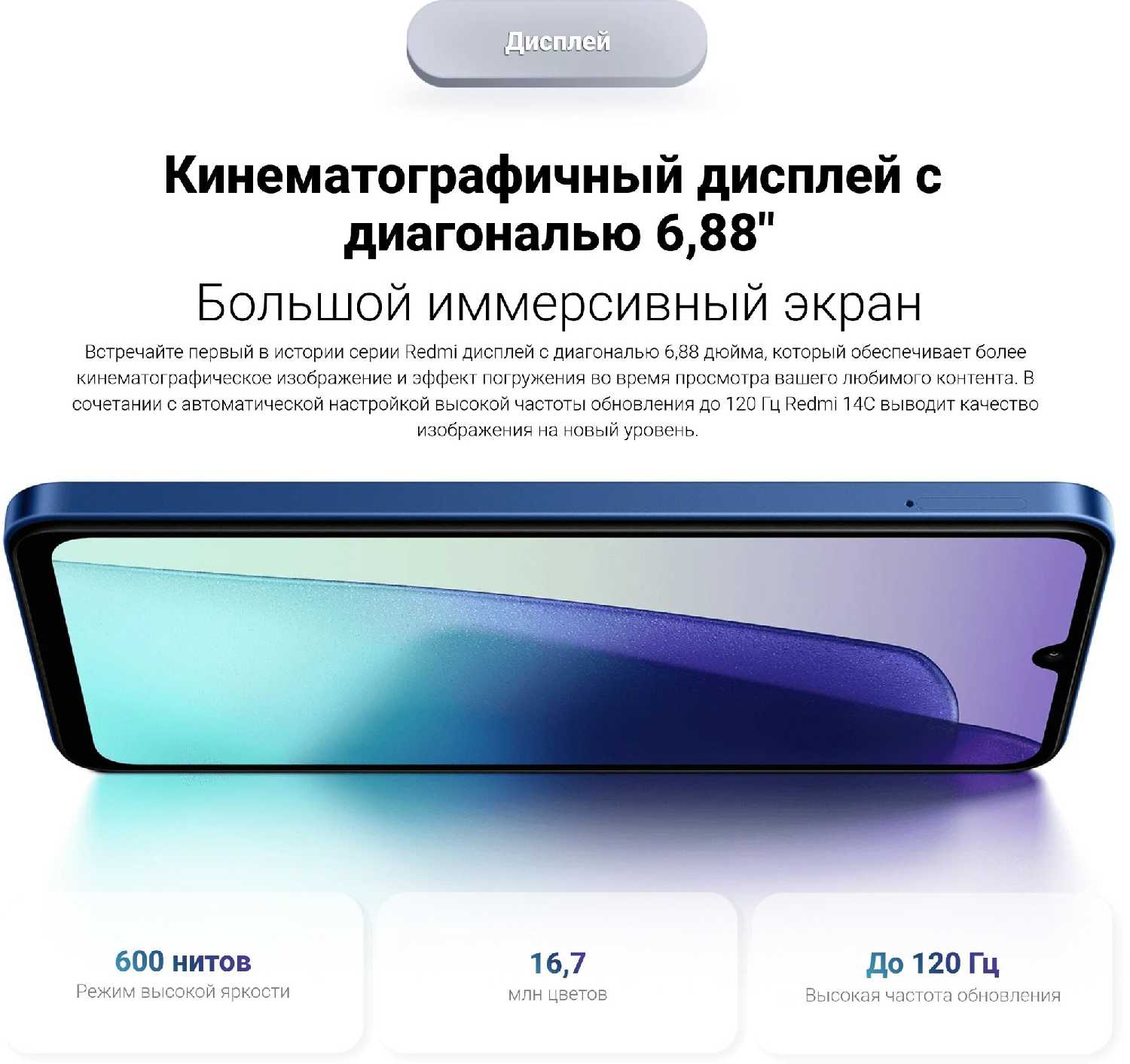 Экран обладает большими размерами (6.88"), но имеет скромное разрешение, что может быть заметно при внимательном рассмотрении. Яркость матрицы недостаточна для комфортного использования под прямыми солнечными лучами. В то же время, многие отмечают плавность работы благодаря поддержке частоты обновления до 120 Гц и наличие режима для защиты зрения. -