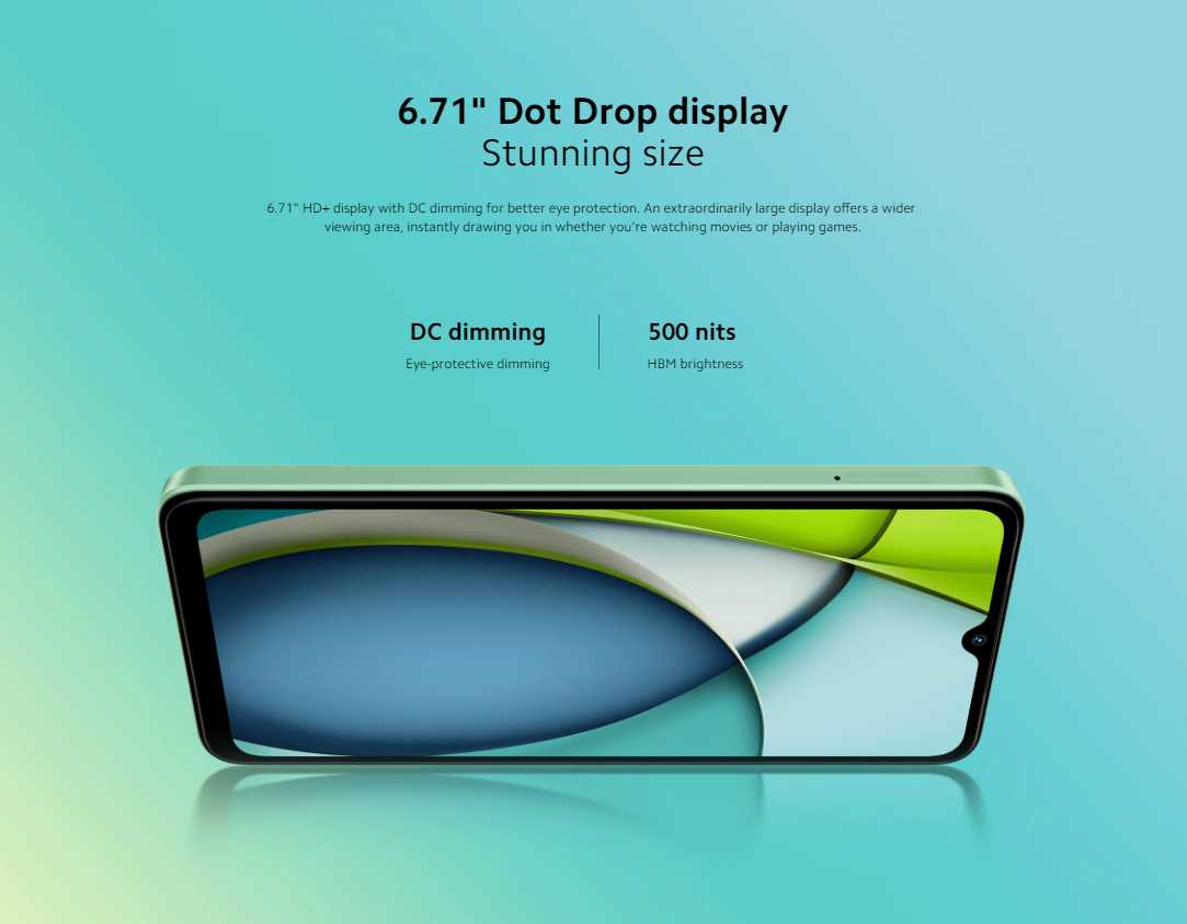 Экран — это окно в цифровой мир вашего смартфона. В Redmi A3x это окно очень большое — целых 6.71 дюйма по диагонали. Разрешение, однако, остаётся скромным: HD+ (1650 x 720 пикселей). Плотность пикселей составляет около 268 PPI. На практике это означает, что индивидуальные пиксели вы вряд ли увидите, но и кристальной чёткостью, как на более дорогих моделях, изображение блистать не будет. Текст и иконки могут казаться немного «мягкими», особенно если вы переходите с аппарата с FullHD-экраном.
