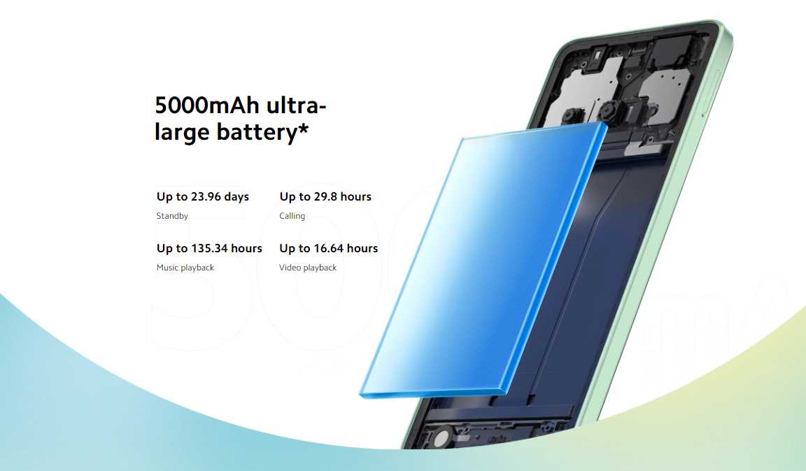 Здесь у Redmi A3x, наконец, появляется неоспоримая сильная сторона. Ёмкость аккумулятора составляет 5000 мАч. Благодаря не самому прожорливому, хоть и неэффективному процессору и HD+ экрану, телефон показывает выдающуюся автономность. Производитель заявляет до 29.8 часов разговоров, 16.6 часов воспроизведения видео и почти 24 дня в режиме ожидания.