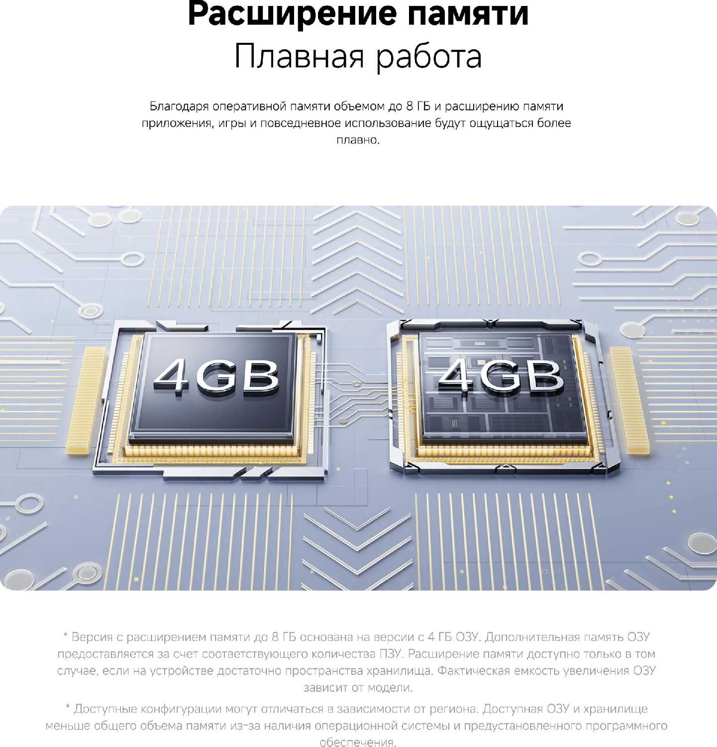 - Достаточный объем памяти: