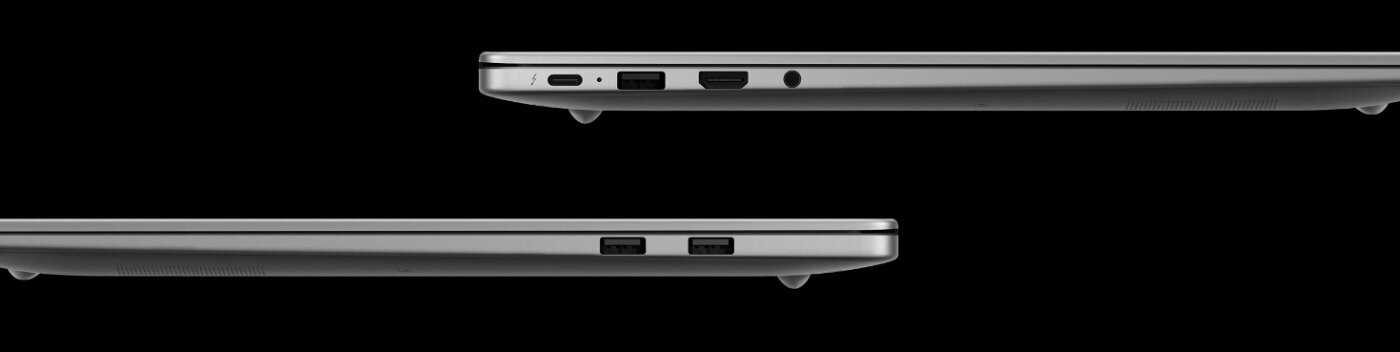 - Тонкий профиль (менее 17 мм) и вес около 1,8 кг облегчают переноску, делая ноутбук удобным для мобильной работы без потери жесткости корпуса.
