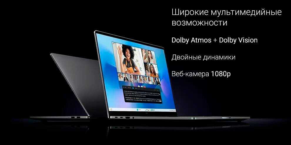 Динамики обеспечивают достаточную громкость и чистоту звука для просмотра фильмов и видеозвонков, хотя их расположение внизу корпуса может создавать проблемы. При установке на мягкие поверхности или вплотную к стене звук может искажаться и терять в громкости. Веб-камера с AI-функциями обеспечивает приемлемое качество для видеоконференций, но не имеет физической шторки закрытия. Пользователи отмечают, что качество камеры посредственное, но достаточно для стандартных бизнес-задач. -
