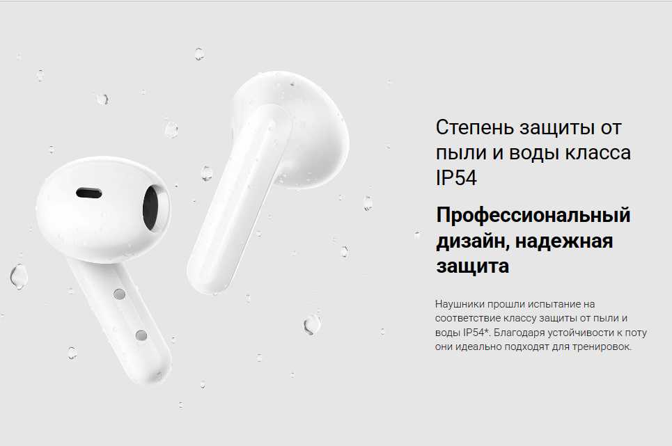 - Наушники выдерживают потоки пота, дождь и падение в воду (до 30 секунд погружения).