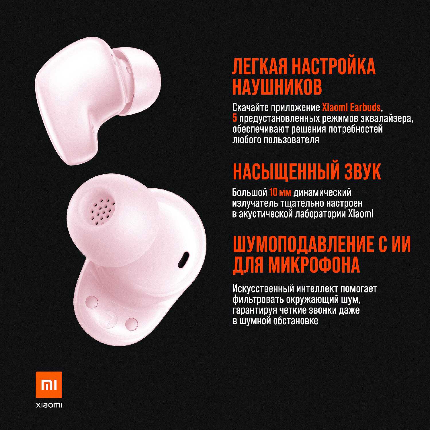 - + Хорошее качество звука. Гибкая настройка в приложении. К телефону Xiaomi подключились с первого открытия крышки кейса. Шумоизоляция при разговоре работает комфортно, собеседник чётко слышит речь.