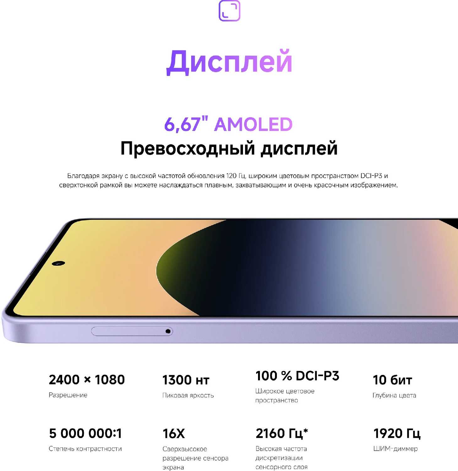 - Экран с высокой детализацией и насыщенной цветопередачей: