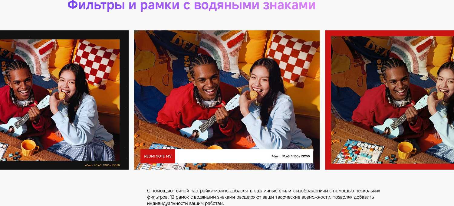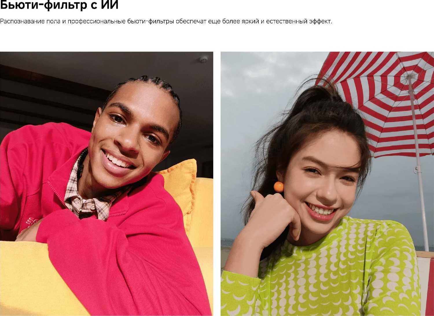 - Четкие селфи и портреты благодаря адаптивным алгоритмам обработки кожи и фона.