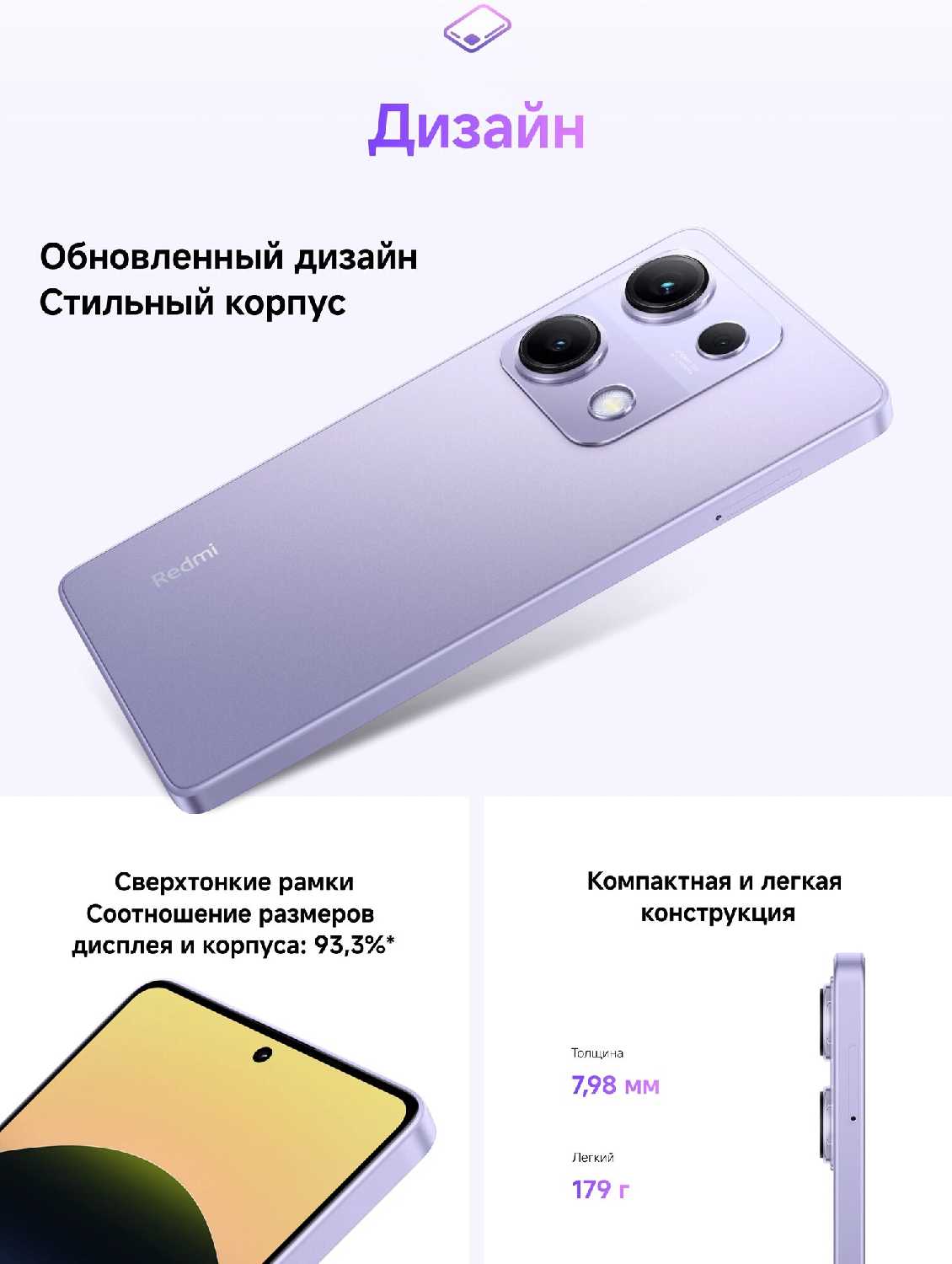 • Экран тоже порадовал - - Пользуюсь меньше недели — в целом очень неприятный опыт. Телефон сильно греется даже при минимальной нагрузке (например, при чтении документа) и начинает пахнуть пластиком. Пробовал менять настройки батареи и закрывать фоновые приложения — не помогло. Батарея за ночь стабильно теряет около 10%, а при простом чтении и в мессенджерах процент уходит на глазах, заряда не хватает на день. У меня уже был Redmi Note 9 Pro — тот в работе выглядел живее и держал заряд увереннее.