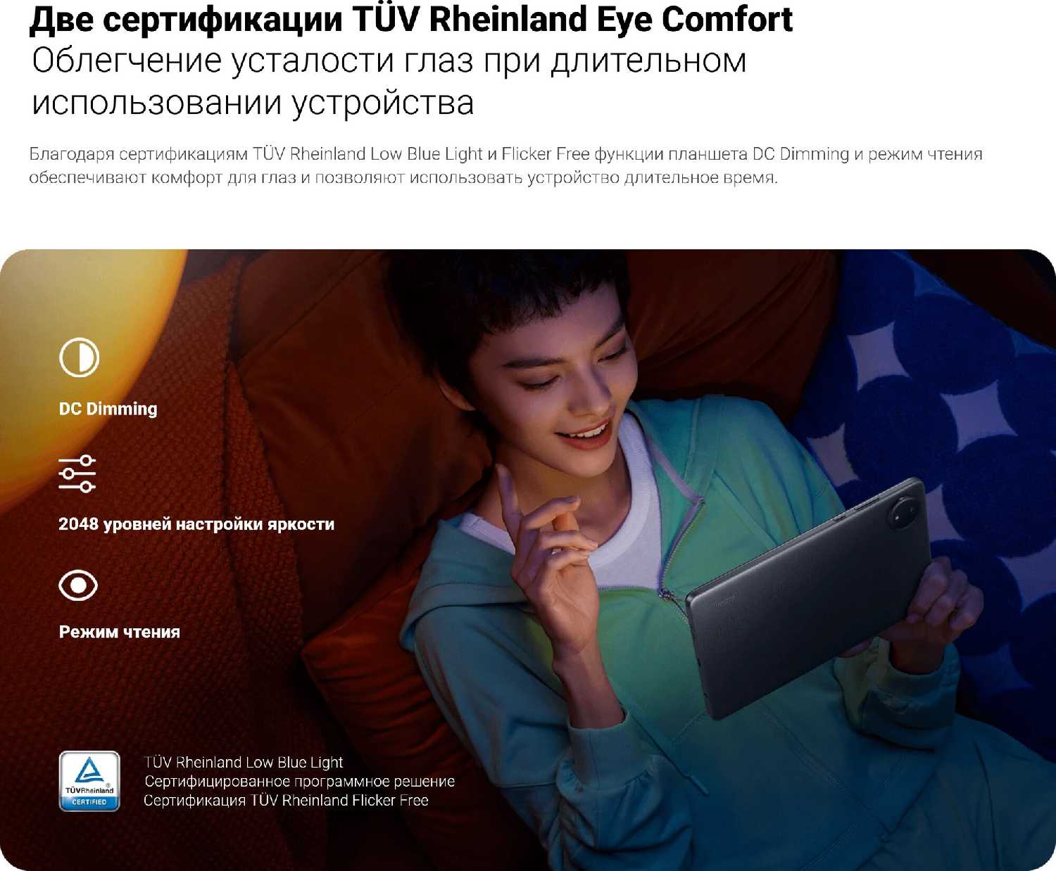 - Наличие олеофобного покрытия снижает заметность отпечатков, а режим защиты зрения с регулировкой цветовой температуры уменьшает нагрузку на глаза при чтении.