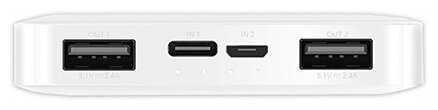- + Отличный девайс, который пригодится как в городе, так и на природе. Девайс с объемом 10000 мАч более удобный в использовании, чем 20000 мАч или 5000 мАч, так как он оптимальный по весу и позволяет зарядить современный телефон примерно 2 раза. Повербанк можно зарядить как microusb, так и type-c, что делает его достаточно универсальным. Также девайс имеет 2 порта usb для заряжания устройств. Выглядит достаточно хорошо, имеет отличный современный дизайн. Также есть световая индикация остатка заряда батареи.
