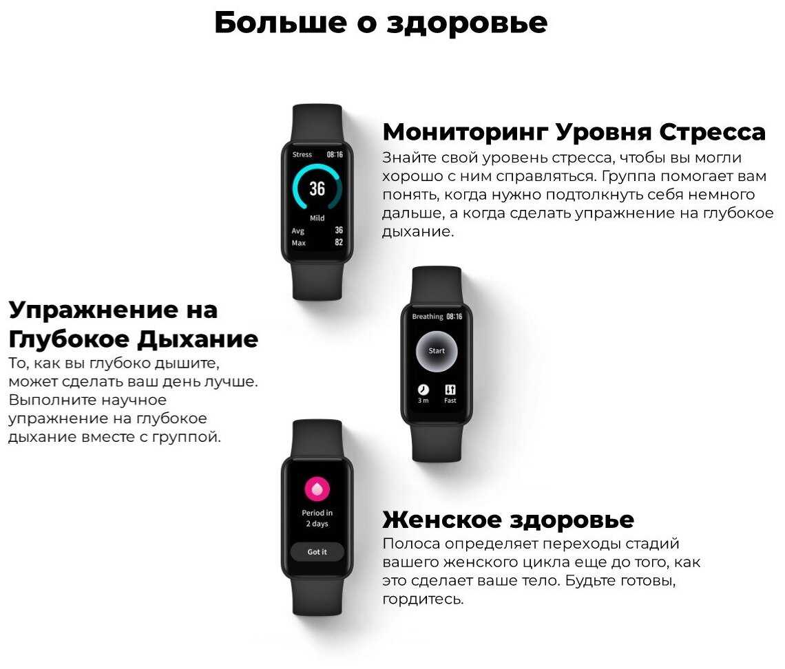 Мониторинг : | акселерометр, калорий, пульса, сна, уровня кислорода в крови, физической активности |