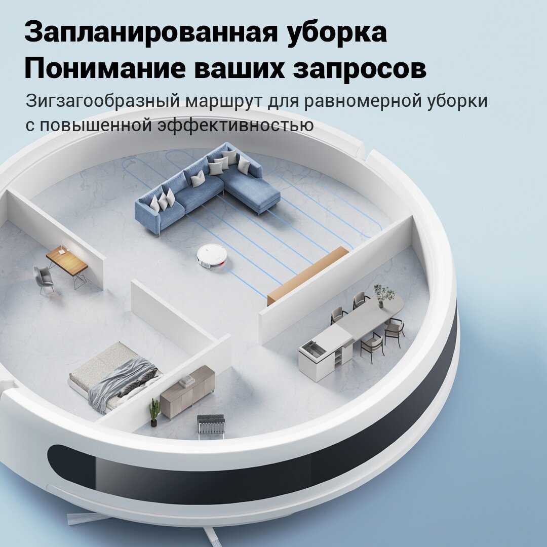 - Возможность создавать виртуальные стены и запретные зоны для влажной уборки (например, ковры).