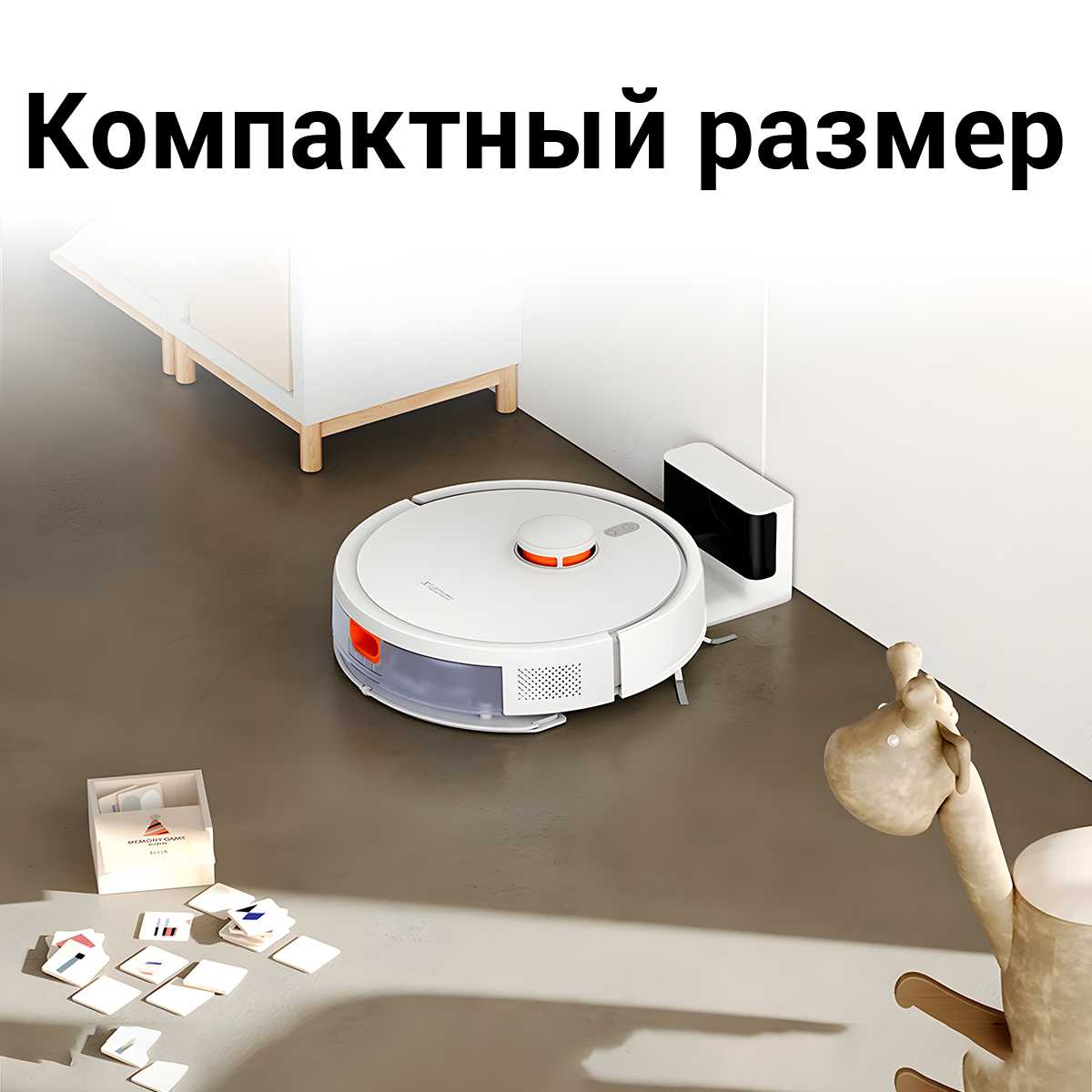- Датчики расстояния (ToF) и ИК-камера распознают предметы высотой от 5 см, включая провода и носки.