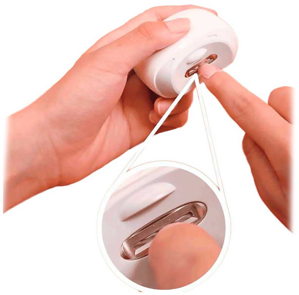 Устройство заменяет ножницы и пилку. После стачивания край ногтя становится сразу аккуратным и ничего с ним делать не нужно. Стачивание безболезненно и не противно. Если сильно засунуть ноготь, то можно сточить до болевых ощущений, но это нужно постараться.