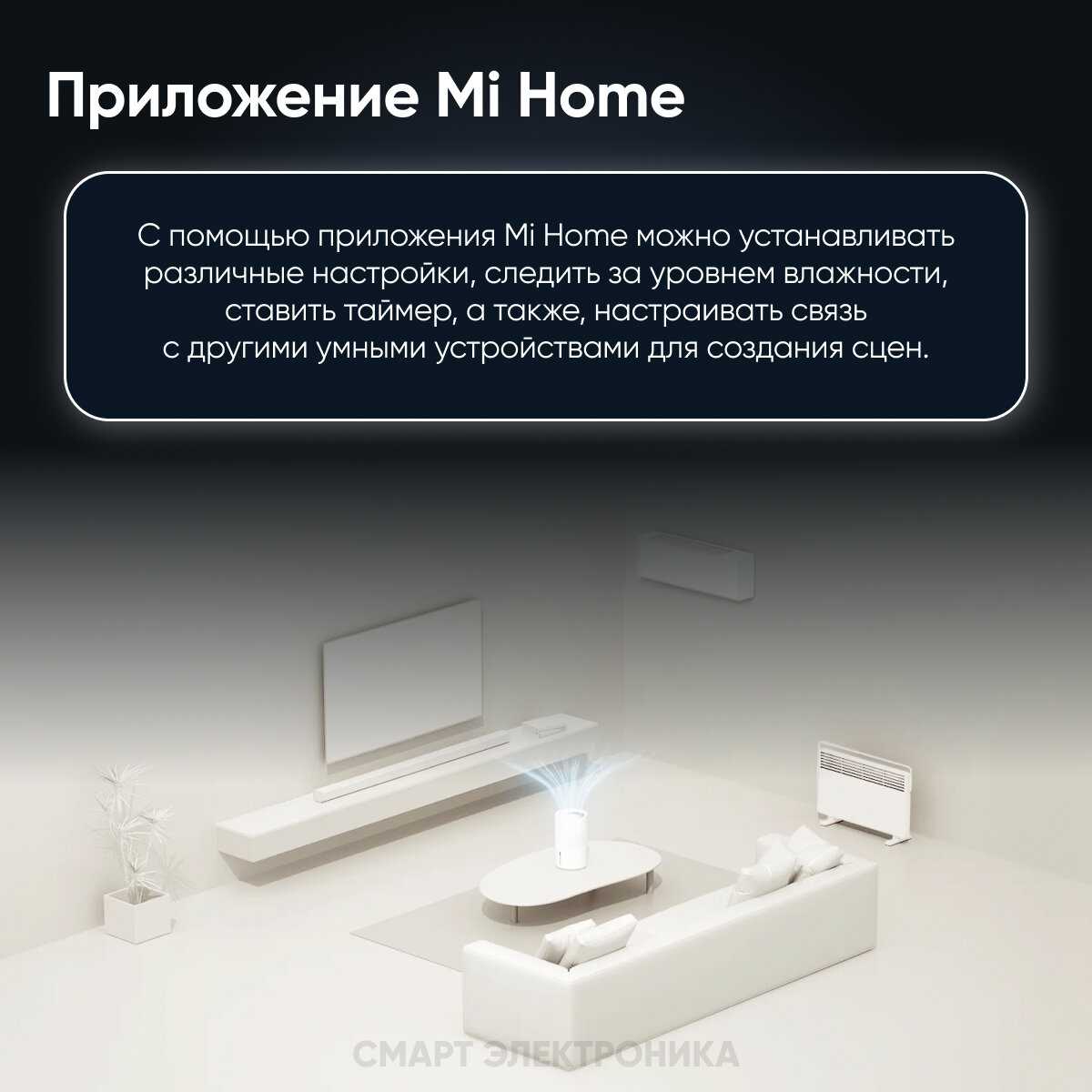 - Понятное дистанционное управление с приложения Xiaomi Home, в нём же можно настроить целевую влажность воздуха;