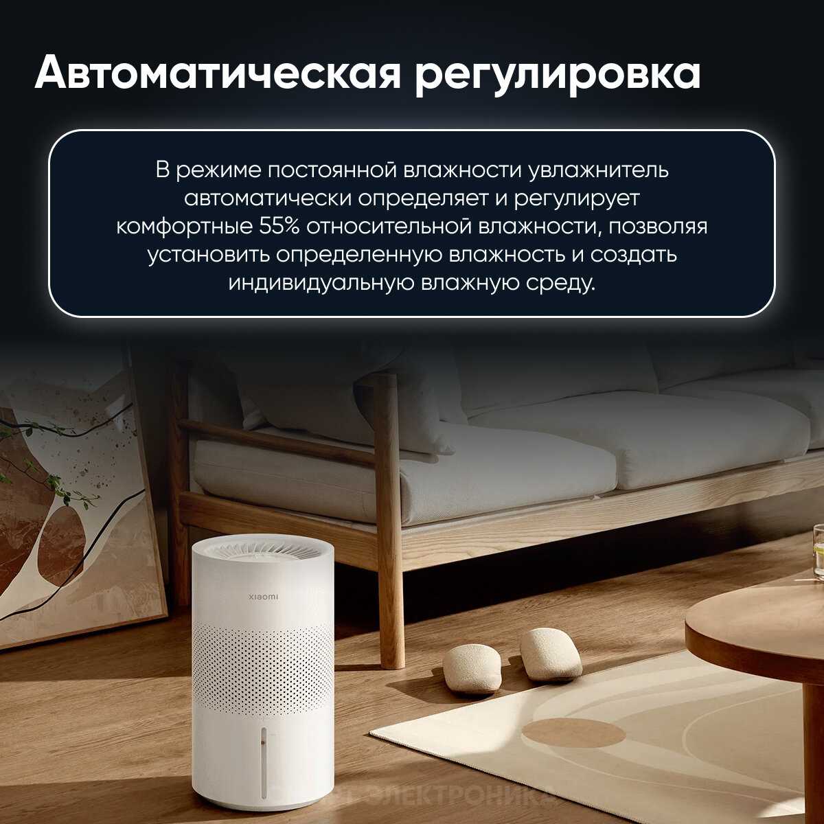 - Три режима работы позволяют адаптировать производительность под текущие потребности в увлажнении.