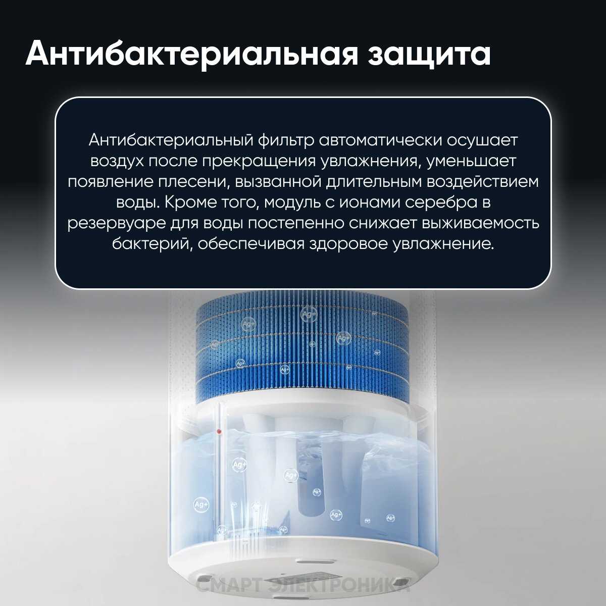 - Функция автоматической сушки фильтра продолжительностью 90 минут предотвращает развитие бактерий и плесени.