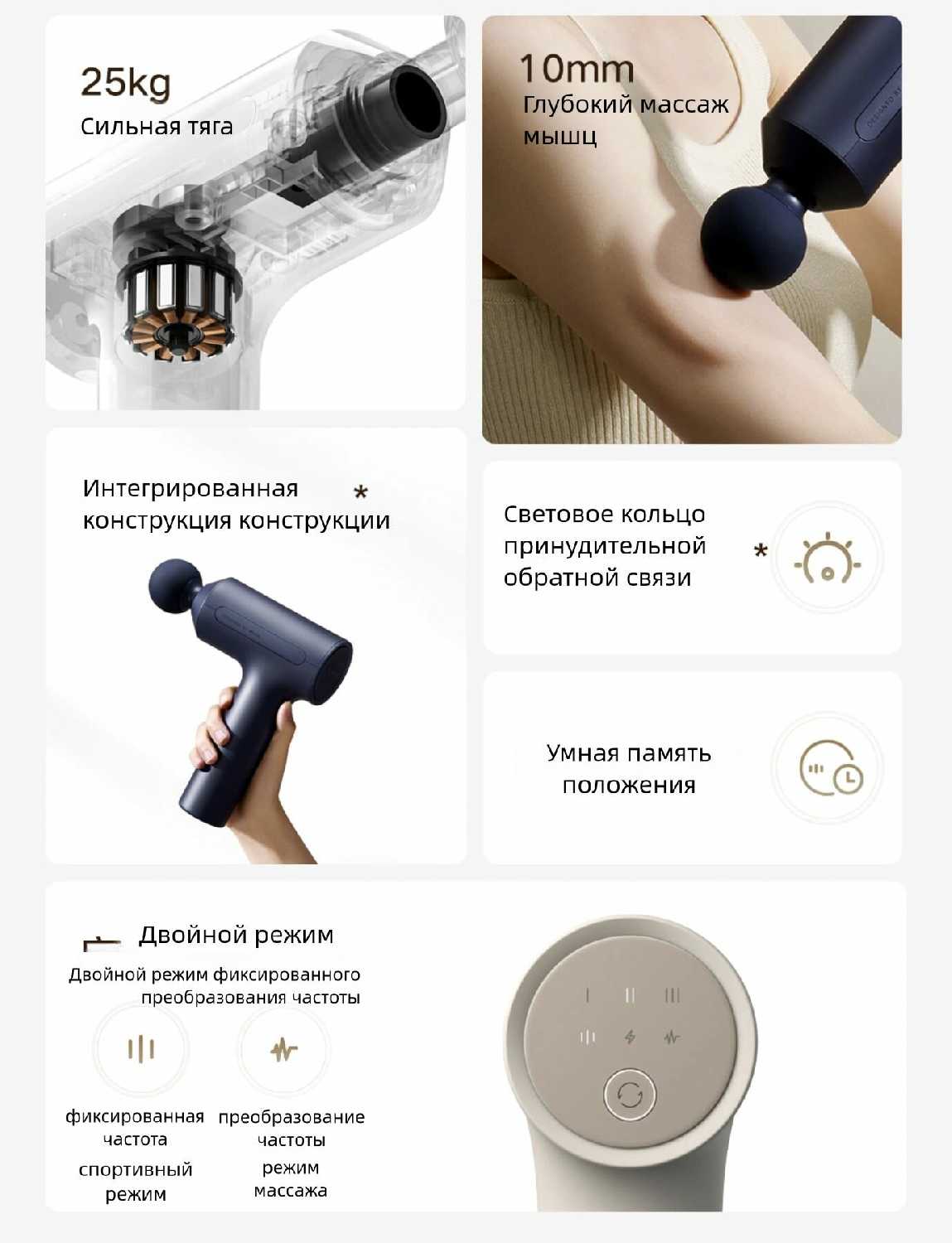 Дополнительная информация : | Сильная тяга 25 кг.Массаж мышечной массы глубиной 10 мм.Комплексное структурное проектированиеДвойной режим с фиксированной частотой и переменной частотойСветовое кольцо обратной связи по скоростиИнтеллектуальная память передачРежим движения с фиксированной частотойРежим массажа с преобразованием частоты |