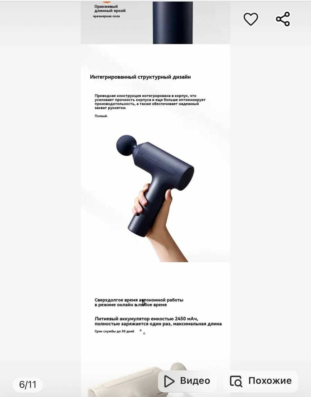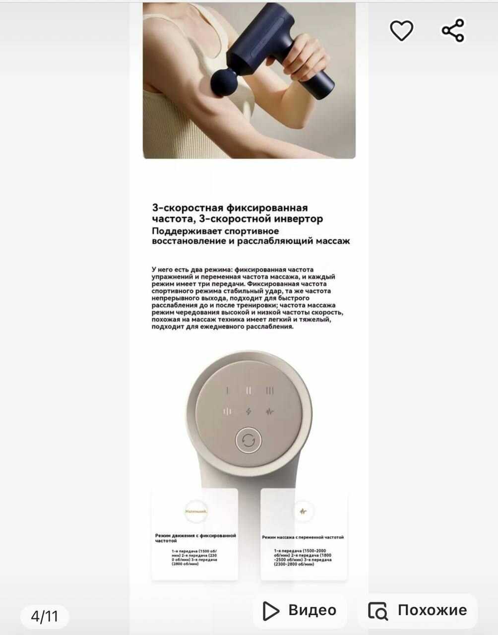 Особенности : | автоматическое отключение, беспроводной, вертикальное хранение, индикация заряда, подогрев, регулировка интенсивности массажа |