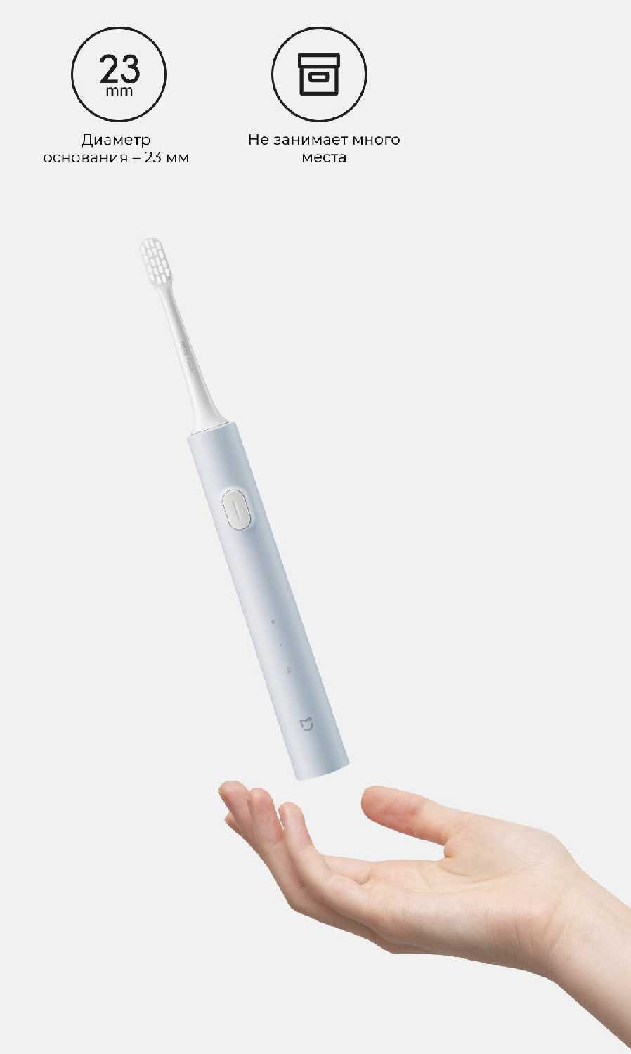 - Тонкий профиль чистящей головки обеспечивает доступ к труднодоступным участкам, включая зубы мудрости и задние поверхности.