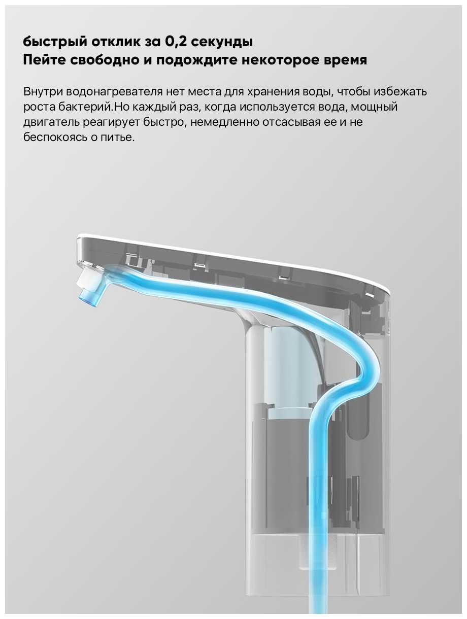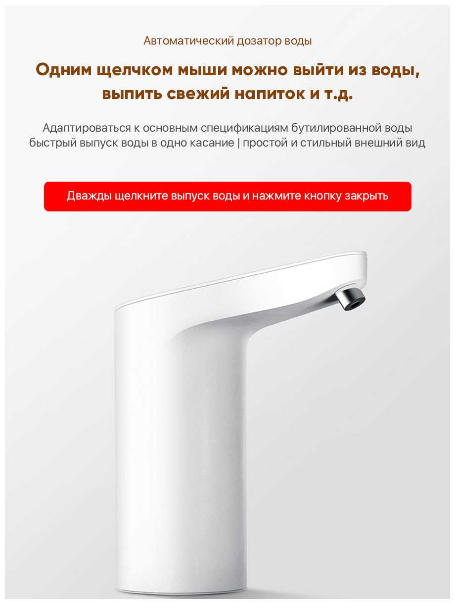 | Дополнительная информация : | мощность: 5 В, рабочая температура воды: 5 – 45 ℃, объем бутылей: от 5 до 189 л, рассчитан на перекачку 1449 литров жидкости от одного заряда, сенсорное управление |