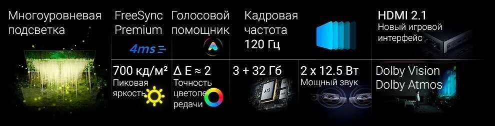 Особенности : | голосовое управление, DLNA, защита от детей, таймер сна, 3D фильтр шума, игровой режим |