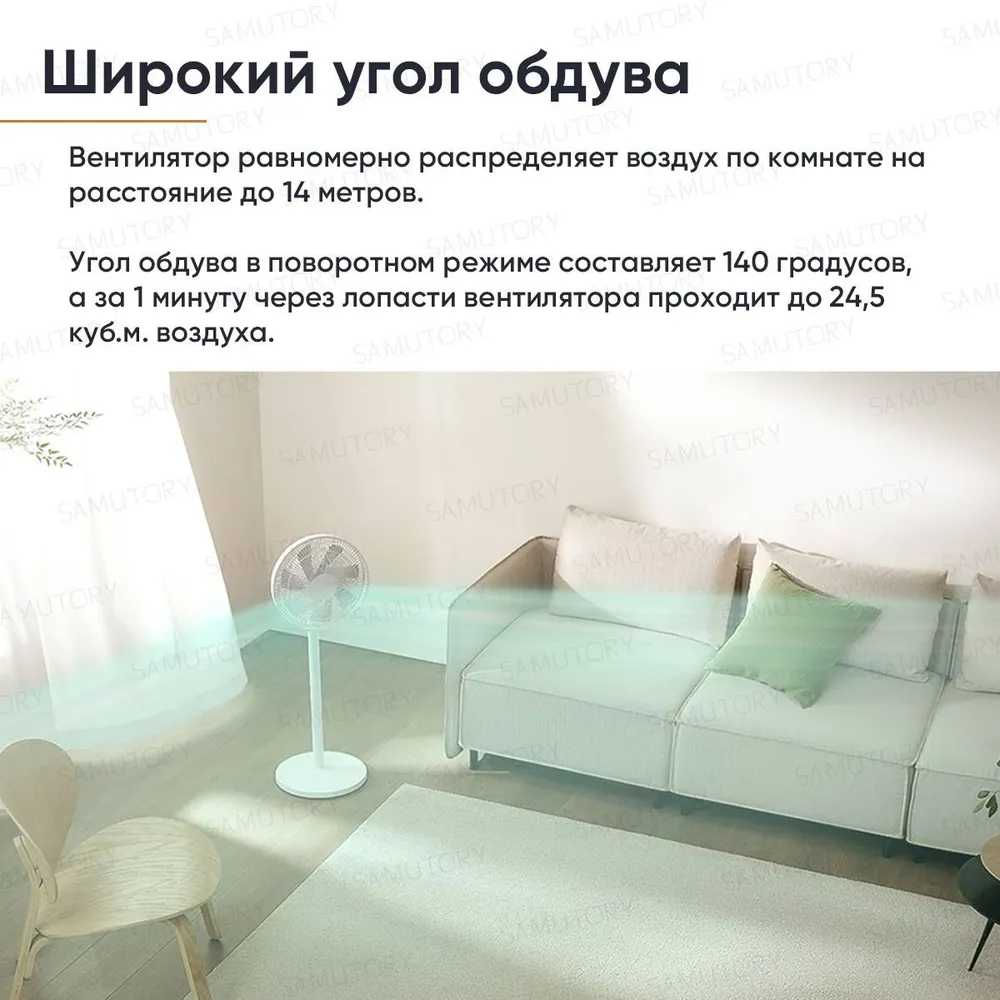 Вентилятор от Xiaomi — отличное решение для дома, на первых двух скоростях его практически не слышно, что делает его идеальным для спальни или работы Мощный обдув даже на минимальных настройках, а режим "природного ветра" создает ощущение естественного бриза .