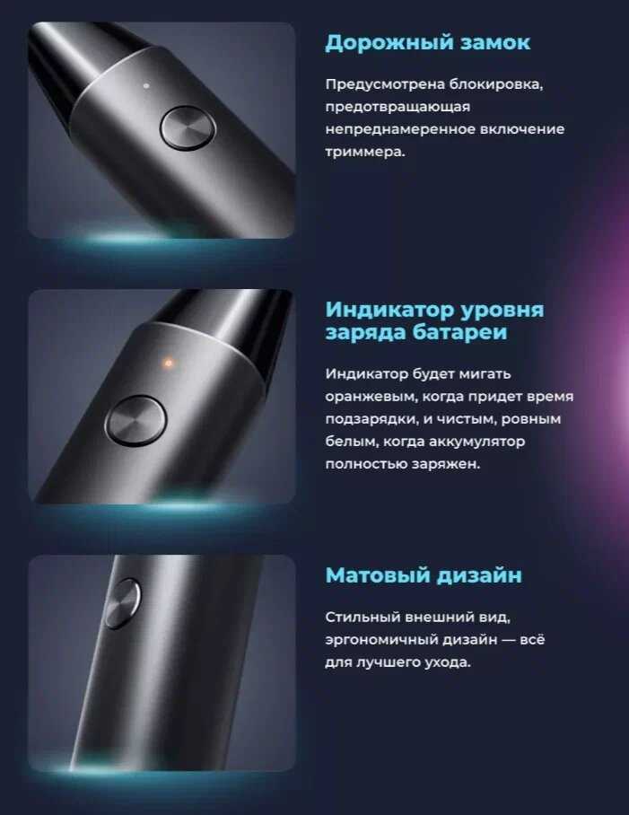 | Особенности : | быстрая зарядка, влагозащищенный корпус, индикатор зарядки, прорезиненные вставки, роторный двигатель |