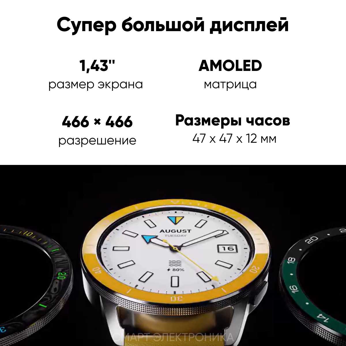 - Яркий AMOLED-экран с высоким разрешением (466x466 пикселей):