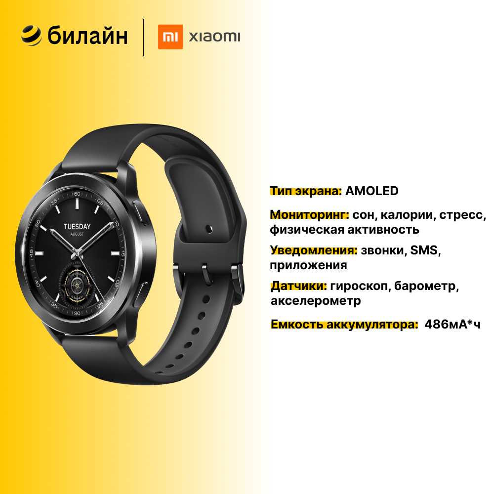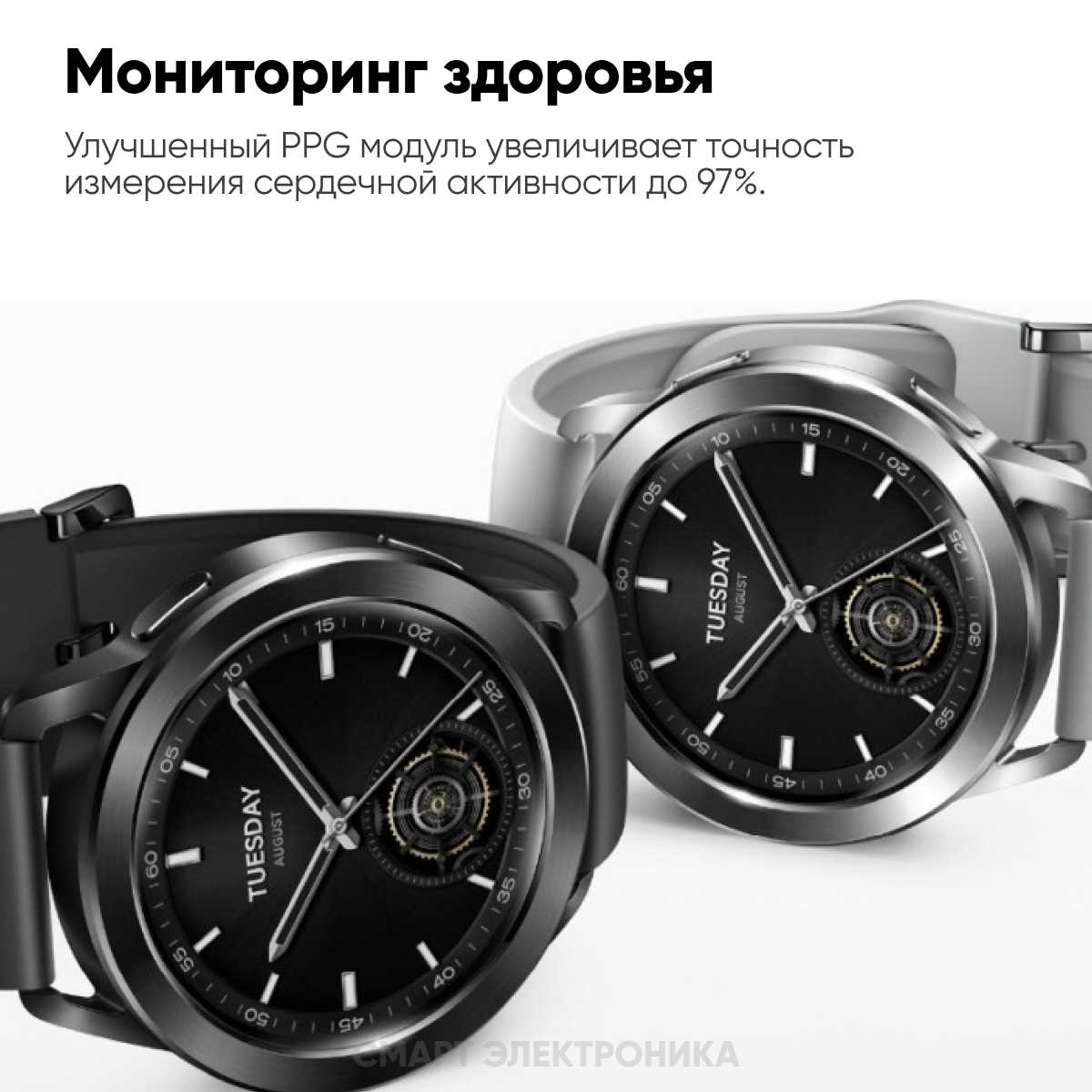 - + Смарт-часы Watch S3 обладают способностью измерять время, кроме прочего, ЧСС, кислород в крови, куча режимов занятий спортом, включая лыжи в этой версии, сменные циферблаты, съёмный кастомный безель, удобный ремешок, возможность совершать и принимать звонки через Bluetooth, обновления на HyperOS.