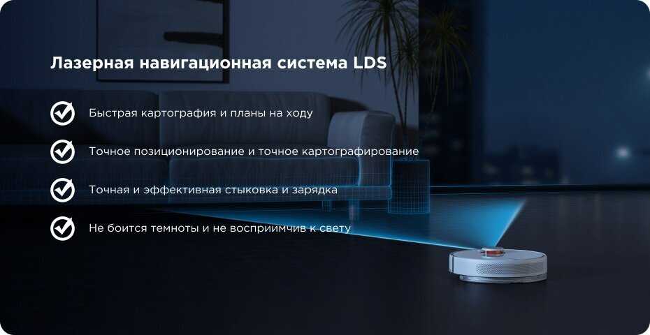 - Точное картографирование с помощью LiDAR и настройка зон уборки: