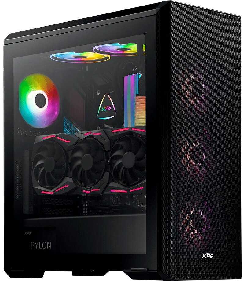 - Большая перфорация на передней панели, боках, верху и снизу обеспечивает эффективный воздушный поток, передние вентиляторы на впуск охлаждают оперативную память и другие компоненты.