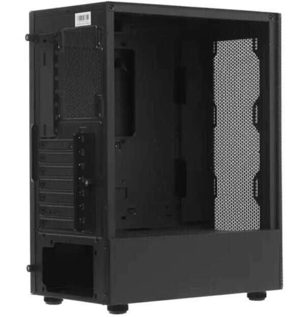 Металл толщиной 0.5-0.6 мм — компромисс для бюджетного сегмента: он легкий (общий вес корпуса около 4.5 кг), но подвержен вибрациям при полной загрузке. В отзывах отмечают чёткую подгонку элементов: стеклянная боковая панель на металлической раме с антивибрационной лентой, плотно фиксирующиеся защёлки, отсутствие дребезжания. Однако на передней решётке возможны сколы краски на сгибах. -