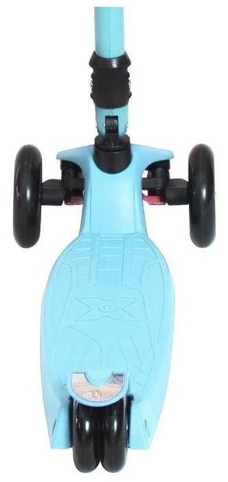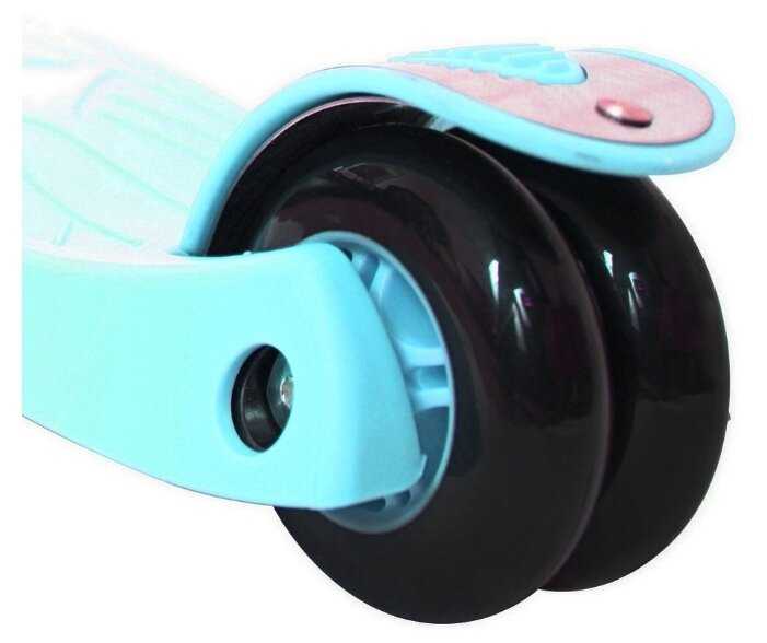 - + Качество, устойчивый-дети ни разу не завалились на самокате. Мягкие и бесшумные 4 светящихся колеса, тормоз на задних колёсах, мягкие ручки. Приятный цвет "аква" Ручка регулируется по высоте в 3-х положениях. Легко складывается, что очень удобно. Поворачивать нужно с помощью наклона всего самоката-нужно приноровиться.