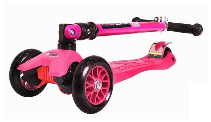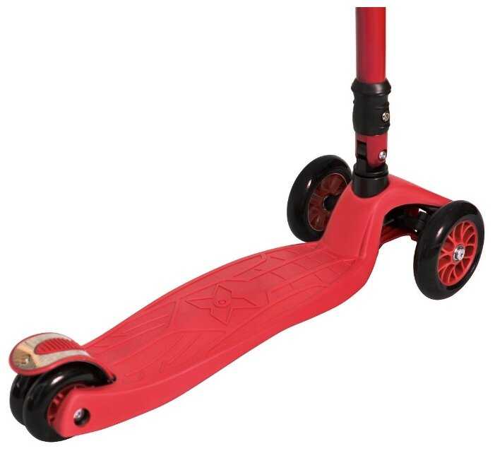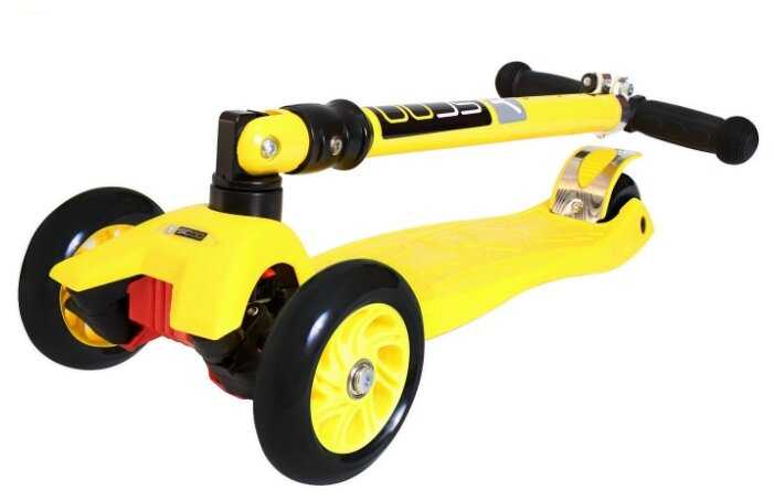 - + Очень добротный, довольно тяжелый. Днище усилено металлической пластиной внушающей доверие. Колеса большие мягко сглаживают все неровности. Светятся только на определенной скорости. Он на самом деле складной - механизм проще некуда. Ручка телескопическая. На самой маленькой высоте подходит ребенку 4 лет а на самой высокой удобно 8 летнему. Платформа широкая не скользкая и длинная поместятся спокойно два ребенка до 5 лет при желании. Максимальная нагрузка 60 кг. Не очень маневренный в силу своего размера-веса или неопытности ездока ). Ребенок наконец вылез из коляски и желает ездить только на нем.