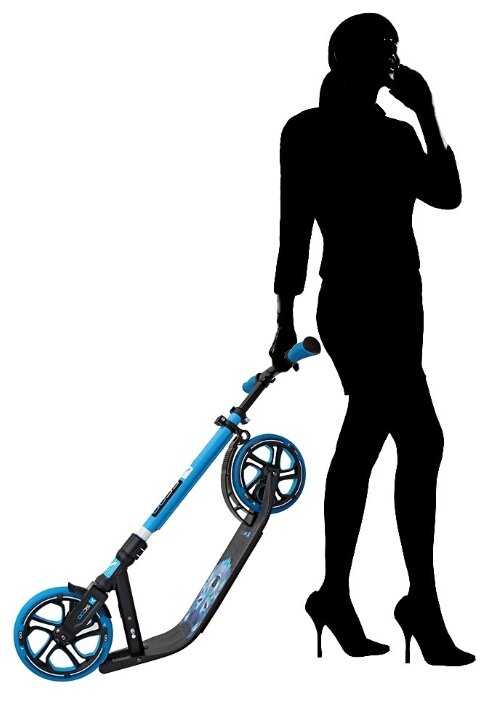 - + Решила я, значит, на старости лет (37) купить себе самокат. Увидела, что взрослые катаются вовсю. Даром, что вес у меня около 95кг (при росте 173см), к вопросу выбора подошла основательно, ограничения по сумме были до 5000р и нужна была крепкая модель. Сперва хотела остановиться на складном (который в рюкзак укладывается, тут же на сайте он есть), но потом поняла, что в местах многочисленных сложений он подо мной рассыпется если не в первый раз, то во второй. Опять же, хотелось взять самокат с большими колёсами, чтоб не как у детишек, а солиднее, а не надувными (встречается и такое). Эта модель понравилась сразу - большие колёса (одинаковые, бывает иначе), широкая и длинная рама, возможность сложить хотя бы пополам, крепкий внешний вид. В целом, ожидания не обманули - он действительно выдерживает мой "стольник" (вроде даже не скрипя особо, 4 раза выезжала, а на некоторых сайтах указано, что он на самом деле до 120кг могёт), по ровному едет отлично, по плитке в парке - дребезжит (неприятненько, но терпеть можно). Руль имеет несколько позиций, регулируется довольно просто (хотя без инструкции не понять, надо отжать одну штучку и нажать на металлическую точку на руле, подтягивая его вверх), так что подогнать можно под разный рост, но он, конечно, не для детей - минимальная высота около 90см. На руль можно повесить сумку-чехол в сложенном виде (покупалась отдельно) или городской рюкзак среднего размера (ручками назад) - самокат выдержит и груз особо не мешает. По ровному, особенно с наклоном, катиться одно удовольствие - дека спокойно умещает 41 размер ноги (с запасом), а вторую ногу можно частично даже поставить рядом с первой, хорошо разогнавшись. Весит эта бандура порядка 7кг, засчёт сложения пополам её носить вполне удобно (а вот катать за собой - неудобно, пачкаешься), но если вы живёте не на 1 этаже и без лифта, может быть удобным купить сразу сумку (и грязь в дом не носить, и носить его в сумке на плече удобнее, чем на вытянутой руке).