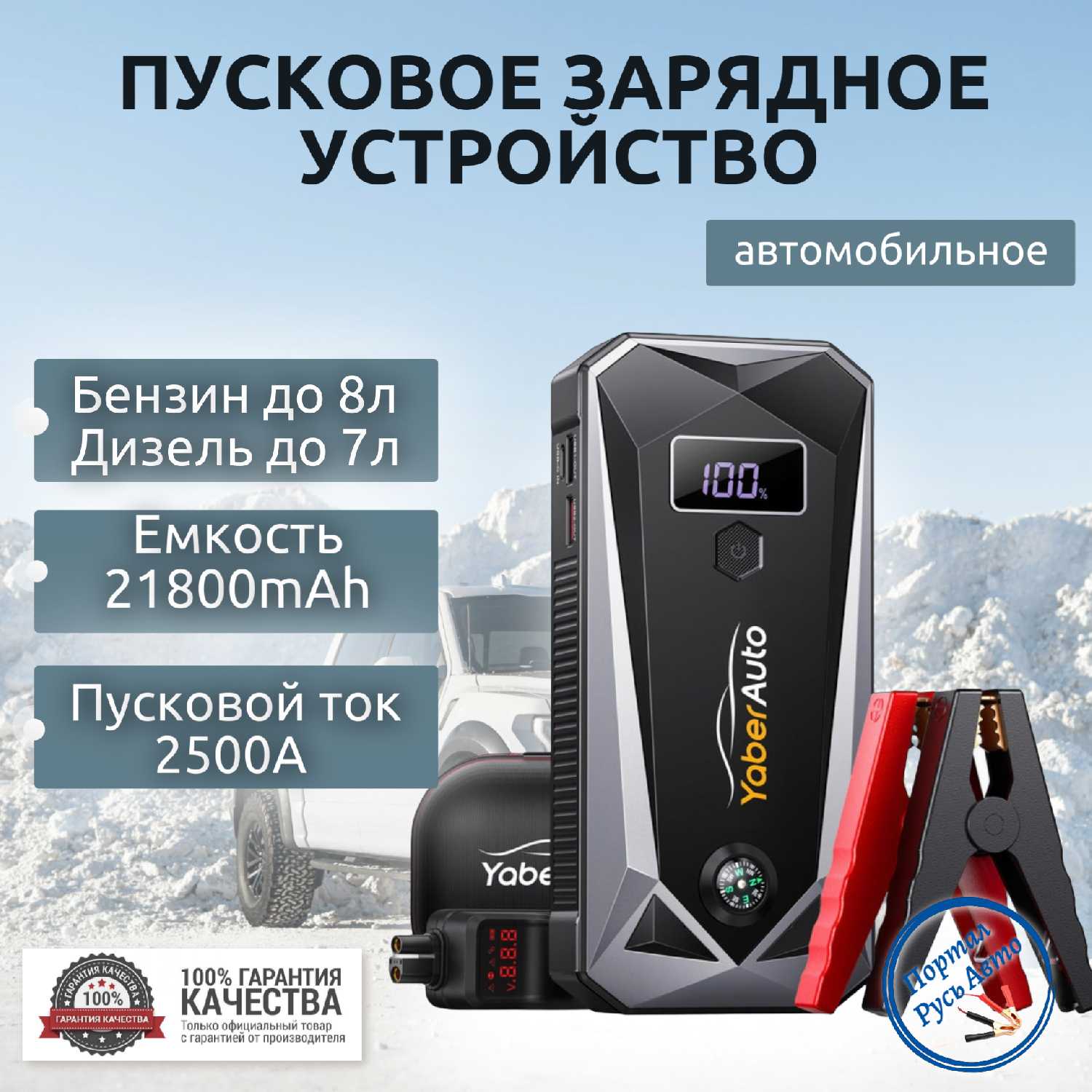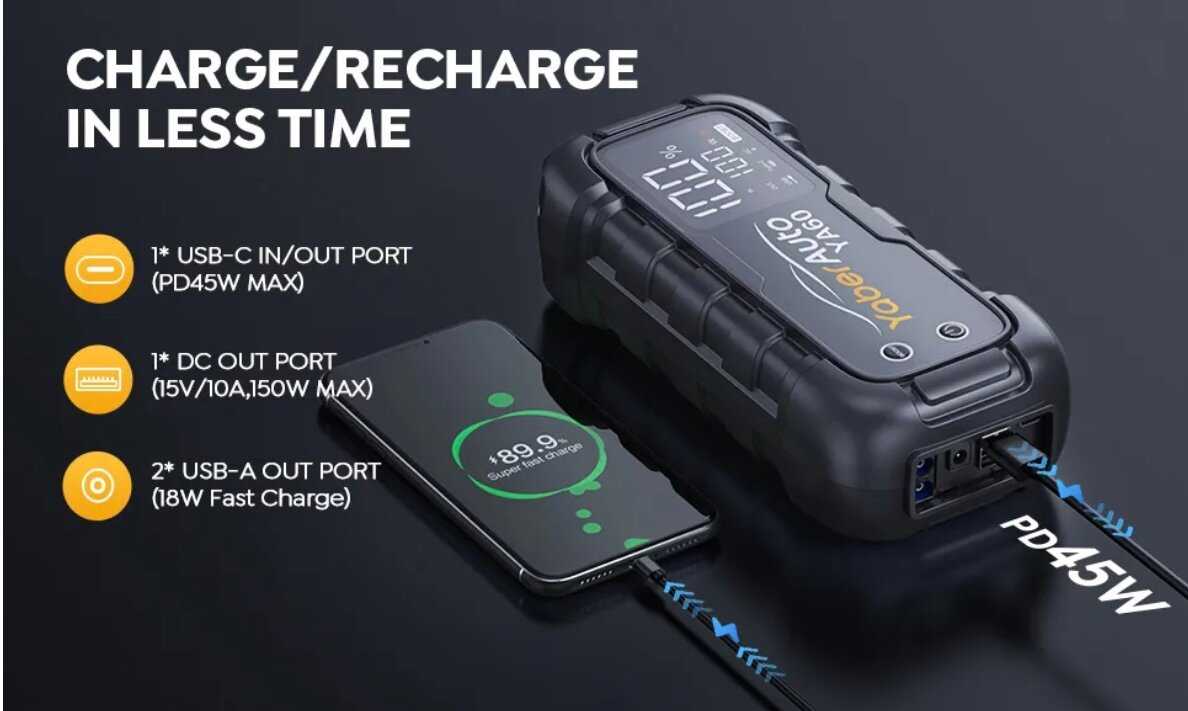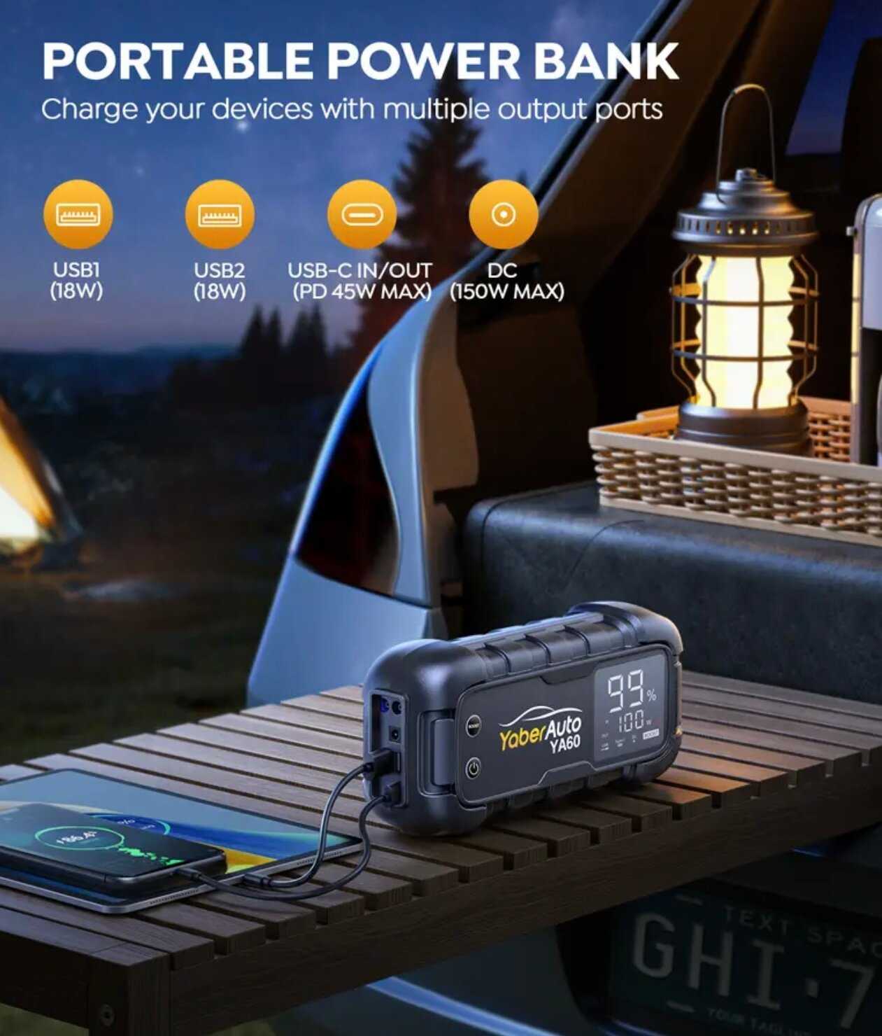 Отзывы о Автомобильное пусковое портативное устройство YABER 26800mAh 4000A
