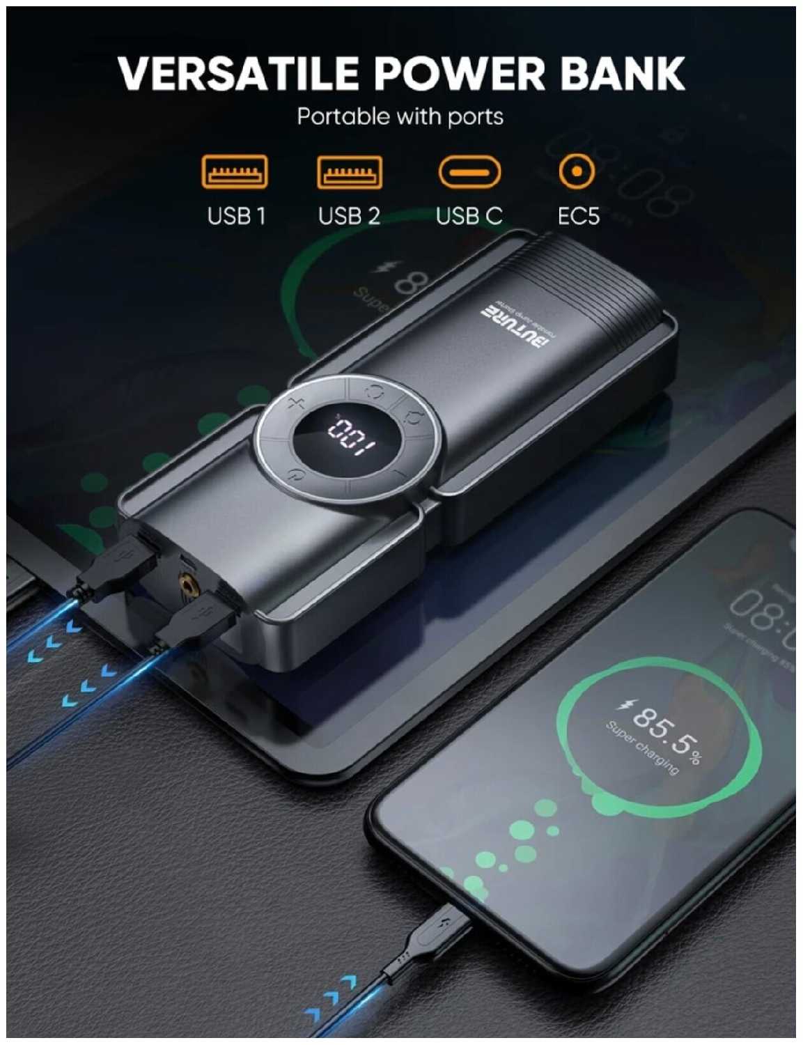 Функции : | быстрая зарядка QC 3.0, встроенный компрессор, встроенный фонарь, зарядка мобильных устройств (Powerbank) |