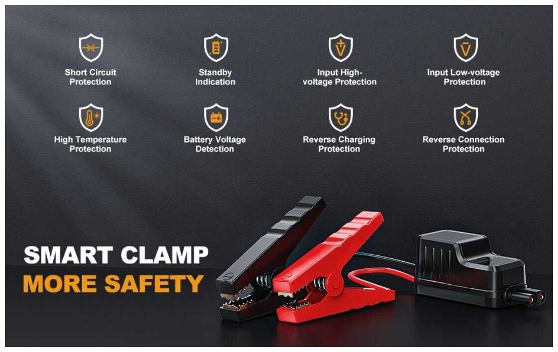 Подробная комплектация : | Автомобильный стартер * 1 Защитные зажимы (красный = Положительный, Черный = отрицательный) * 1 Инструкции * 1 Коробка для хранения * 1 |