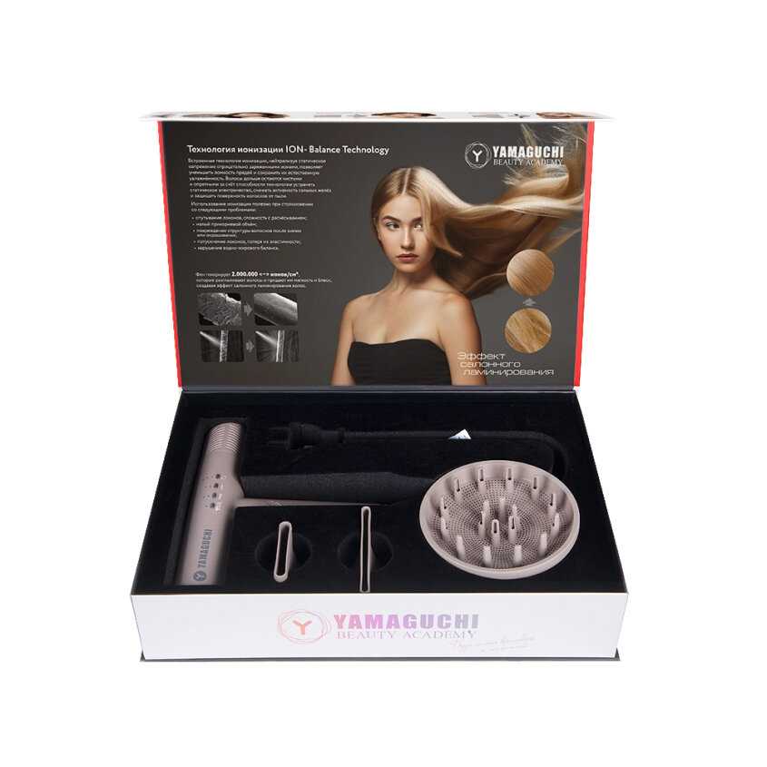 Фен оснащен функцией чередования горячего и холодного воздуха — это не только ускоряет сушку, но и улучшает структуру волос, делая их более прочными. Магнитная система креплений — инженерное преимущество: насадки не перегреваются, а их замена занимает секунды. Мощность (точные параметры не указаны, но в отзывах ее называют «достаточной для густых волос») сочетается с энергоэффективностью. Отдельно выделяют длинный и прочный кабель, хотя он не вращается, что может быть неудобно в небольших пространствах. Пользователи, сравнивающие Yamaguchi с Dyson, отмечают, что японский аналог превосходит его в количестве режимов и портативности за счет складной ручки.