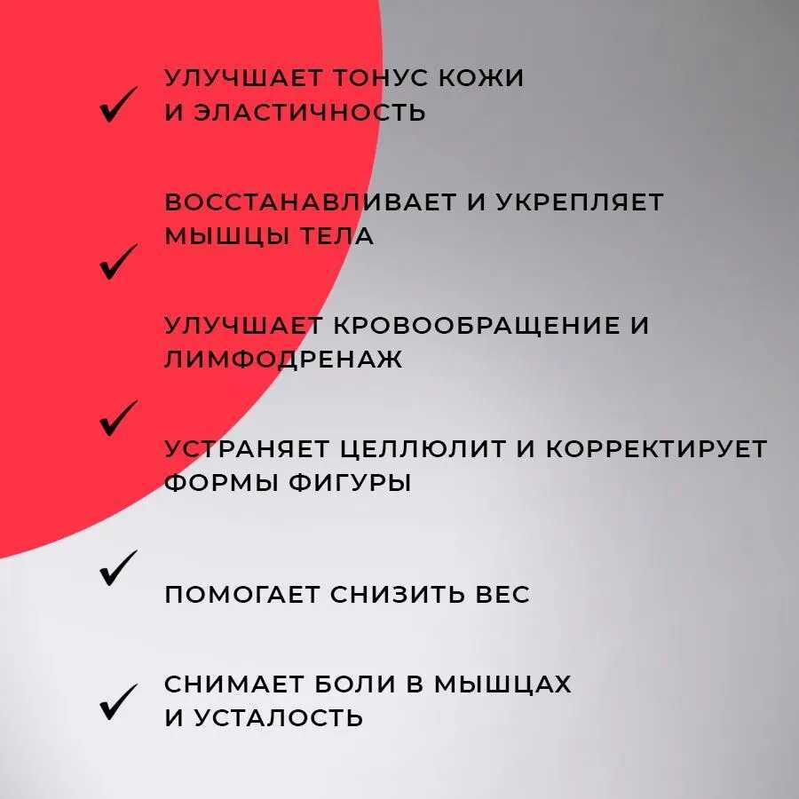 - Высокая эффективность в снятии мышечного напряжения и болевых синдромов:
