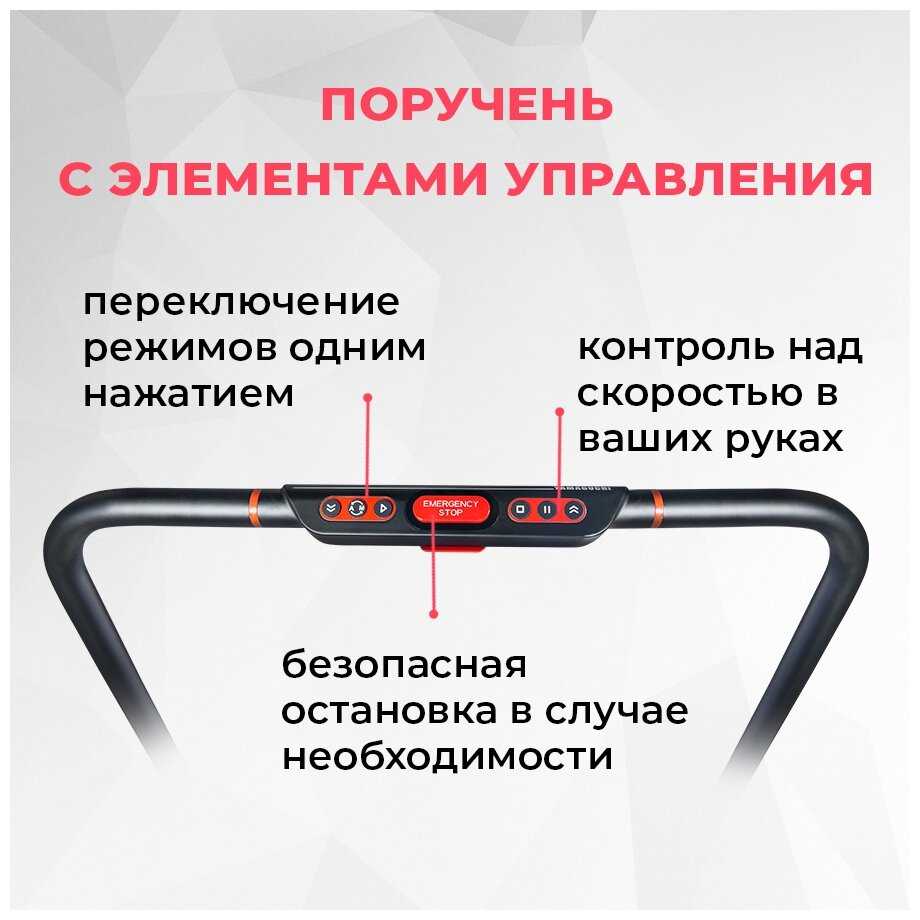 - Автоматический режим регулирует скорость под темп шага, минимизируя риск травм.